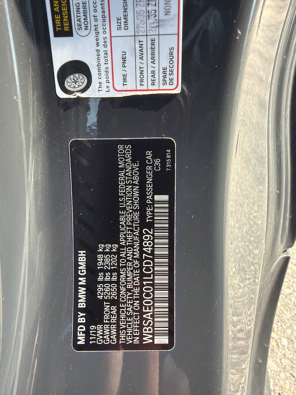 - Front tires: 275/35YR20.0