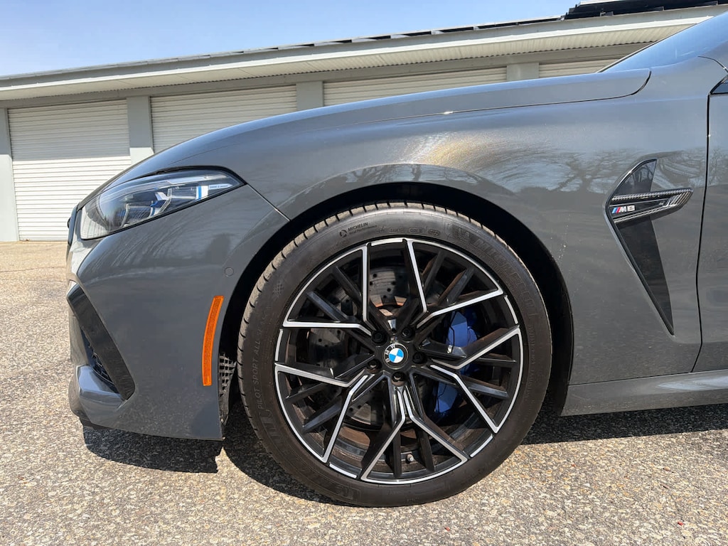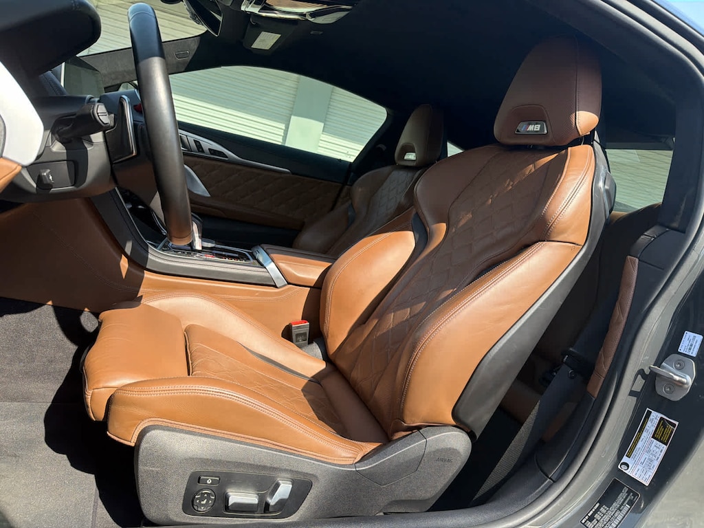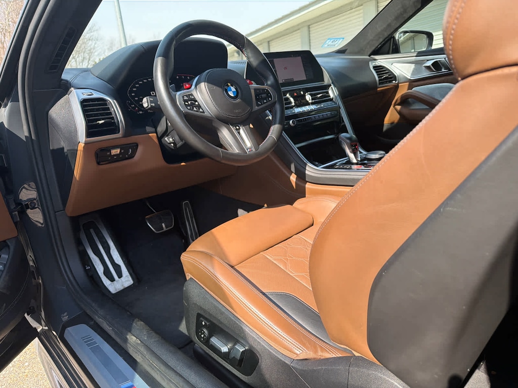 Navigation, All Wheel Drive, Quad Bucket Seats, Power Liftgate, Heated Driver Seat, Cooled Driver Seat, Satellite Radio, iPod/MP3 Input, Onboard Communications System, Aluminum Wheels. Rear Spoiler, MP3 Player, Keyless Entry, Remote Trunk Release. Non-Smoker vehicle BMW M8 Coupe with Individual Dravit Grey Metallic exterior and Taruma Brown interior features a 8 Cylinder Engine with 600 HP at 6000 RPM*.