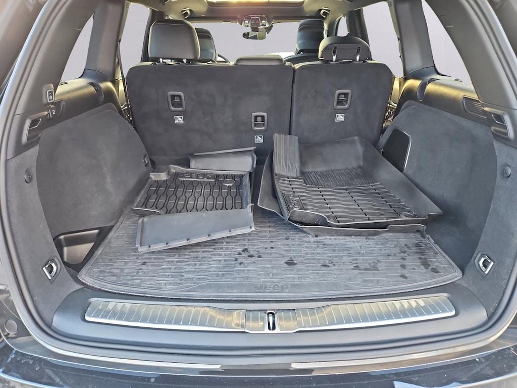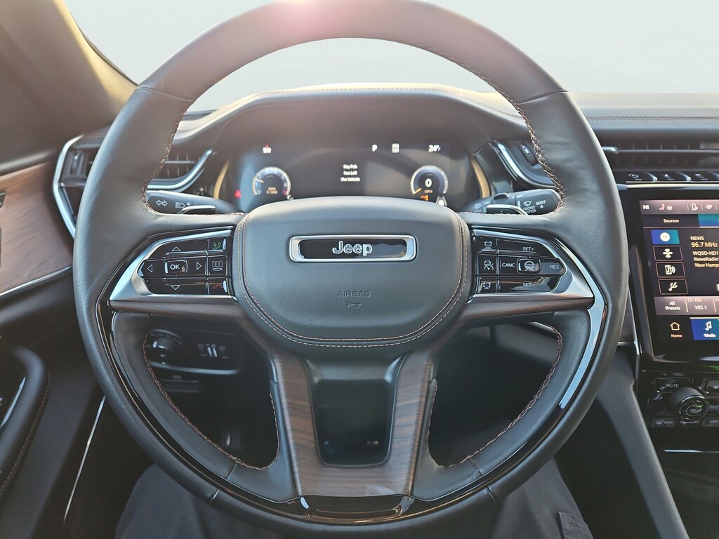 Rocky Mountain Pearlcoat 2023 Jeep Grand Cherokee Summit 3.6L V6 24V VVT 8-Speed Automatic 4WD ADV Protech Group IV (Heads-Up Display, Night Vision w/Pedestrian-Animal Detection, and Rearview Autodim Digital Display Mirror), Luxury Tech Group V (2nd-Row Manual Window Shades and Wireless Charging Pad), Quick Order Package 23S, 4WD, 10 Speakers, 3.45 Rear Axle Ratio, 4-Wheel Disc Brakes, ABS brakes, Active Noise Control System, Adaptive suspension, Air Conditioning, Alloy wheels, AM/FM radio: SiriusXM with 360L, Anti-whiplash front head restraints, Audio memory, Auto High-beam Headlights, Auto-dimming door mirrors, Auto-dimming Rear-View mirror, Auto-leveling suspension, Automatic temperature control, Auxiliary Battery, Brake assist, Bumpers: body-color, Compass, Delay-off headlights, Driver door bin, Driver vanity mirror, Dual front impact airbags, Dual front side impact airbags, Electronic Stability Control, Emergency communication system, Four wheel independent suspension, Front anti-roll bar, Front Bucket Seats, Front Center Armrest w/Storage, Front dual zone A/C, Front fog lights, Front License Plate Bracket, Front Passenger Interactive Display, Front reading lights, Fully automatic headlights, Garage door transmitter, Genuine wood dashboard insert, Genuine wood door panel insert, Heated door mirrors, Heated front seats, Heated rear seats, Heated steering wheel, Illuminated entry, Knee airbag, Leather steering wheel, Low tire pressure warning, Memory seat, Nappa Leather Seats, Navigation System, Normal Duty Suspension, Occupant sensing airbag, Outside temperature display, Overhead airbag, Overhead console, Panic alarm, Passenger door bin, Passenger vanity mirror, Power door mirrors, Power driver seat, Power Liftgate, Power moonroof, Power passenger seat, Power steering, Power windows, Radio data system, Radio: Uconnect 5 Nav w/10.1" Display, Rain sensing wipers, Rear air conditioning, Rear anti-roll bar, Rear dual zone A/C, Rear reading lights, Rear seat center armrest, Rear window defroster, Rear window wiper, Remote keyless entry, Security system, Speed control, Speed-Sensitive Wipers, Split folding rear seat, Spoiler, Steering wheel memory, Steering wheel mounted audio controls, Tachometer, Telescoping steering wheel, Tilt steering wheel, Traction control, Trip computer, Turn signal indicator mirrors, Variably intermittent wipers, Ventilated front seats, Voltmeter, and Wheels: 20" x 8.5" Fully Painted Aluminum Silver. 4WD.
