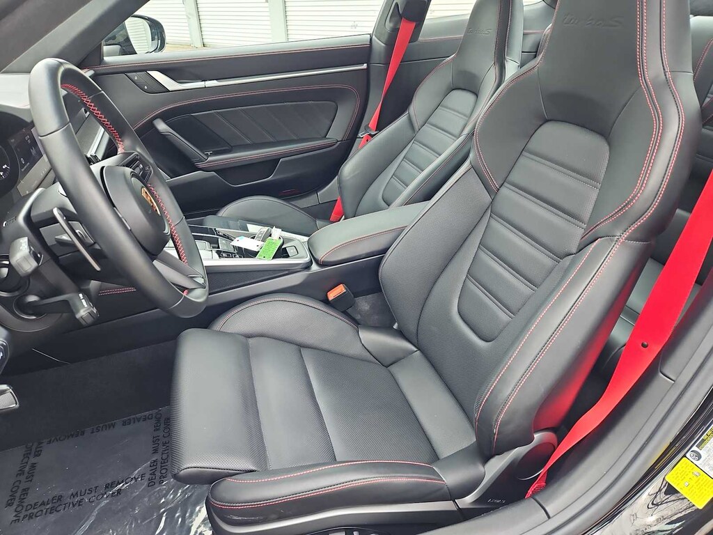 Leather Seats, Navigation, All Wheel Drive, Quad Bucket Seats, Heated Driver Seat, Back-Up Camera, Premium Sound System, Satellite Radio, iPod/MP3 Input, Bluetooth® Rear Spoiler, MP3 Player, Keyless Entry, Steering Wheel Controls. Serviced here, Non-Smoker vehicle, Porsche Certified! Loaded with all the right options! Perfect build! Jet Black Metallic 2023 Porsche 911 Turbo S 3.8L H6 Turbocharged DOHC 24V LEV3-ULEV70 640hp 8-Speed Porsche Doppelkupplung (PDK) AWD AU Leather Interior in Black 2T Jet Black Metallic 3FE Electric Slide/Tilt Sunroof in Glass UD1 Under Door Puddle Light Projectors KQ2 PORSCHE Logo on Rear in High Gloss Black 0NC Model Designation on Rear in High Gloss Black 2UH Front Axle Lift System 0P9 Sport Exhaust System incl. Tailpip Porsche Turbo S with Jet Black Metallic exterior and Black interior features a Flat 6 Cylinder Engine with 640 HP at 6750 RPM*.