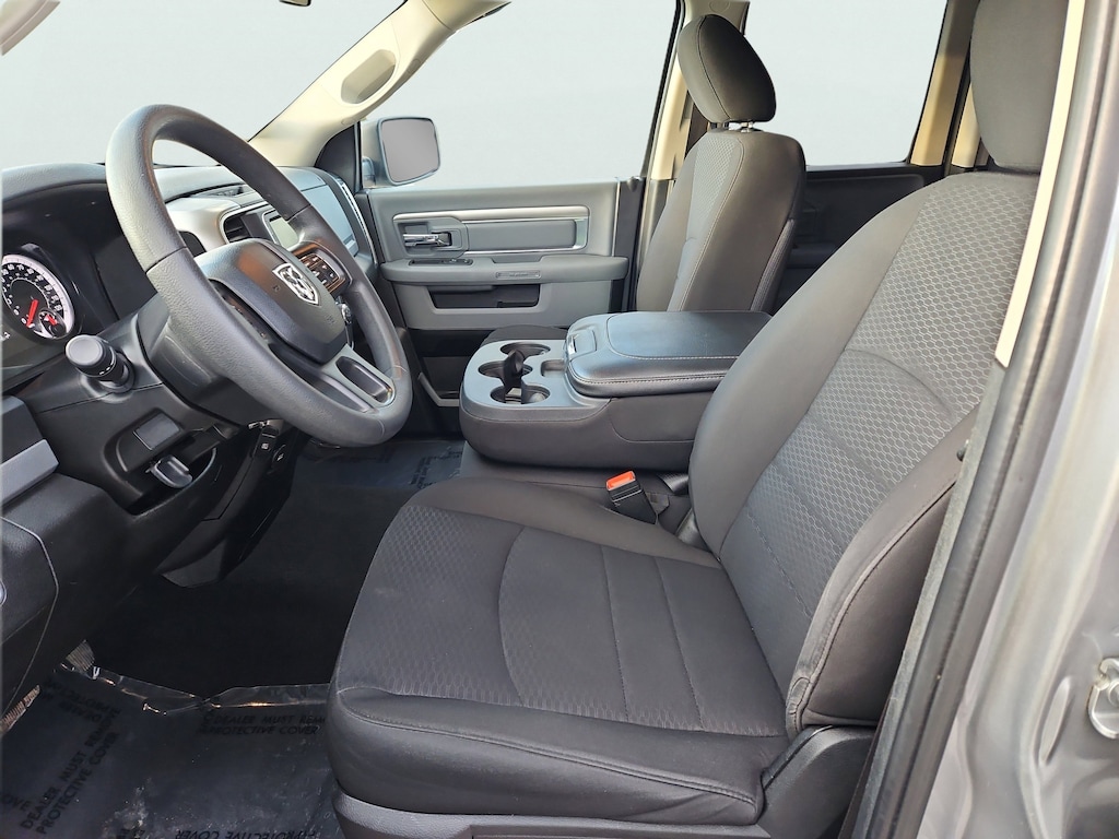 Quick Order Package 22F Warlock (Bi-Function Halogen Projector Headlamps, Black Door Handles, Black Exterior Truck Badging, Black RAM Head Tailgate Badge, Front LED Fog Lamps, ParkSense Rear Park Assist System, Rear Extra HD Shock Absorbers, Rear Floor Mats, Semi-Gloss Black Hub, Sport Tail Lamps, Tow Hooks, Warlock, Warlock Decal, and Wheels: 20" x 8" Semi-Gloss Black Aluminum), Quick Order Package 27F Warlock (DISC) (Black Powder Coated Front Bumper and Dual Rear Exhaust w/Bright Tips), 17" x 7" Aluminum Wheels, 4-Wheel Disc Brakes, 40/20/40 Split Bench Seat, 6 Speakers, ABS brakes, Active Grille Shutters, Air Conditioning, Alloy wheels, AM/FM radio: SiriusXM, Black Exterior Mirrors, Brake assist, Bumpers: chrome, Charge Only Remote USB Port, Cloth 40/20/40 Bench Seat, Compass, Delay-off headlights, Driver door bin, Dual front impact airbags, Dual front side impact airbags, Electronic Shift, Electronic Stability Control, Exterior Mirrors w/Heating Element, Front anti-roll bar, Front Armrest w/3 Cupholders, Front Center Armrest w/Storage, Front reading lights, Front wheel independent suspension, Fully automatic headlights, GPS Antenna Input, Heated door mirrors, Illuminated entry, Integrated Voice Command w/Bluetooth, Low tire pressure warning, Occupant sensing airbag, ORT License Plate Bracket, Outside temperature display, Overhead airbag, Overhead console, Panic alarm, ParkView Rear Back-Up Camera, Passenger door bin, Passenger vanity mirror, Power door mirrors, Power steering, Power windows, Radio data system, Radio: Uconnect 3 w/5" Display, Rear anti-roll bar, Rear step bumper, Remote keyless entry, SiriusXM Satellite Radio, Speed control, Tachometer, Tilt steering wheel, Tip Start, Traction control, Trip computer, Variably intermittent wipers, and Voltmeter.