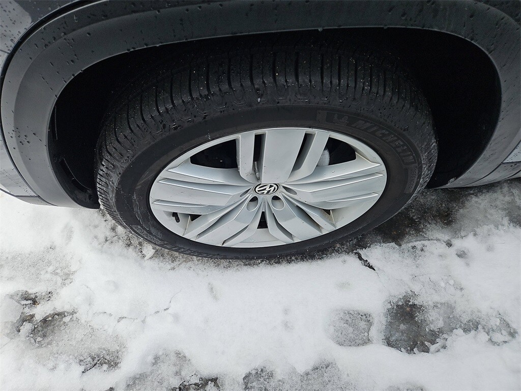 18" 5-Spoke Wheels, 3rd row seats: split-bench, 4-Wheel Disc Brakes, 8 Speakers, ABS brakes, Active Blind Spot Monitor, Air Conditioning, AM/FM radio: SiriusXM, Auto-dimming Rear-View mirror, Automatic temperature control, Brake assist, Bumpers: body-color, Compass, Delay-off headlights, Driver door bin, Driver vanity mirror, Dual front impact airbags, Dual front side impact airbags, Electronic Stability Control, Emergency communication system: VW Car-Net services (capabilities require enrollment or subscription), Exterior Parking Camera Rear, Forward collision: FCW w/Autonomous Emergency Braking mitigation, Four wheel independent suspension, Front anti-roll bar, Front Bucket Seats, Front Center Armrest, Front dual zone A/C, Front fog lights, Front reading lights, Garage door transmitter: HomeLink, Heated Comfort Front Bucket Seats, Heated door mirrors, Heated front seats, Heated steering wheel, Memory seat, Navigation System, Panic alarm, Power door mirrors, Power driver seat, Power Liftgate, Power moonroof, Power passenger seat, Power steering, Power windows, Radio data system, Radio: Discover Media 8.0" Touchscreen w/Nav, Rain sensing wipers, Rear air conditioning, Rear anti-roll bar, Rear window defroster, Rear window wiper, Remote CD player, Remote keyless entry, Roof rack: rails only, Security system, Speed-sensing steering, Split folding rear seat, Standard Suspension, Steering wheel mounted audio controls, Telescoping steering wheel, Traction control, Turn signal indicator mirrors, V-Tex Leatherette Seating Surfaces, Variably intermittent wipers.