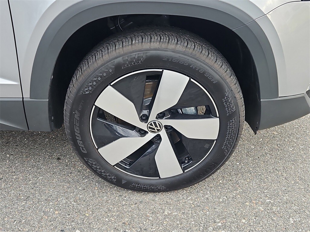 Recent Arrival! Pyrite Silver Metallic 2025 Volkswagen Taos 1.5T S 1.5L I4 Turbocharged DOHC 16V LEV3-SULEV30 174hp 8-Speed Automatic with Tiptronic AWD